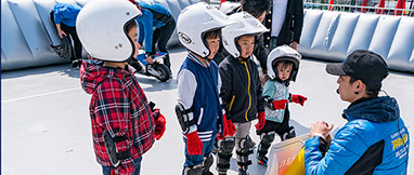 当日はエンジンを始動せず、ポケバイにまたがり足で地面をこいで進む体験形式になります。